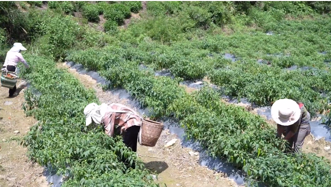 采摘下来的新鲜辣椒,一部分被村民直接拿到市场上售卖,另一部分则被腌制加工。腌制后的高山土辣椒皮肉厚、色彩艳、又脆又辣,成为餐桌上的美味佳肴,在市场上十分畅销。“我们村共有360户、1100余人,全村辣椒种植面积在1000多亩,产量每年在30万—40万斤左右,年产值有150多万元。未来,我们将结合农产品交易中心项目的实施,通过商超对接、直播带货等,带动辣椒等高山产业发展,进一步带动村民致富增收。”杨村乡篁村村党总支第一书记、驻村工作队队长蒋子君说道。(郑辰)