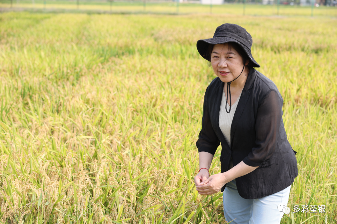 4月2日,三亚,张琴总经理在凯发k8省南繁基地查看水稻田间展示情况。图/多彩荃银